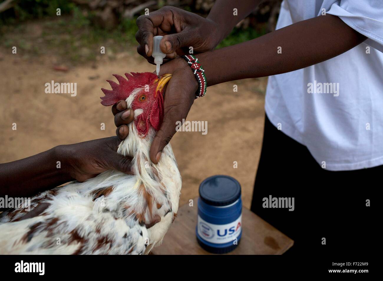 Ein Kenianischen Farm Berater Verwaltet Einen Impfstoff Gegen Newcastle Krankheit Bei Huhnern 18 Juli 2015 In Siranga Kenia Stockfotografie Alamy