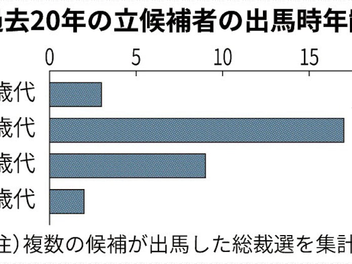 総裁候補 過去20年の平均60 2歳 候補者の年齢 上昇傾向 日本経済新聞