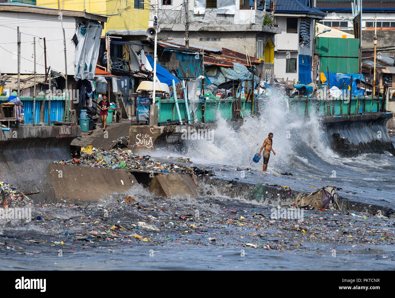 Cebu City Phillippines 15th September 2018 As Typhoon Mangkhut Hit Northern Areas In The Philippines Many Coastal Areas Further South Were Affected By High Winds Rain Bands In This Image A Man