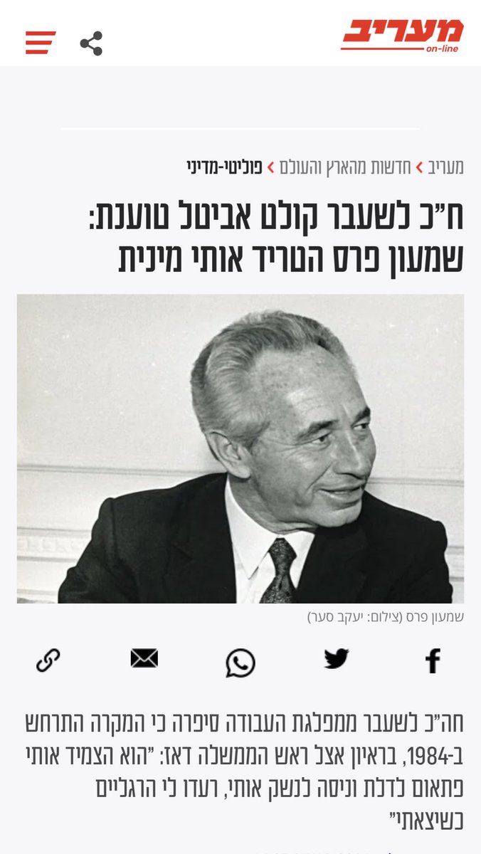 ח כ לשעבר קולט אביטל טוענת שמעון פרס הטריד אותי מינית חדשות מעריב